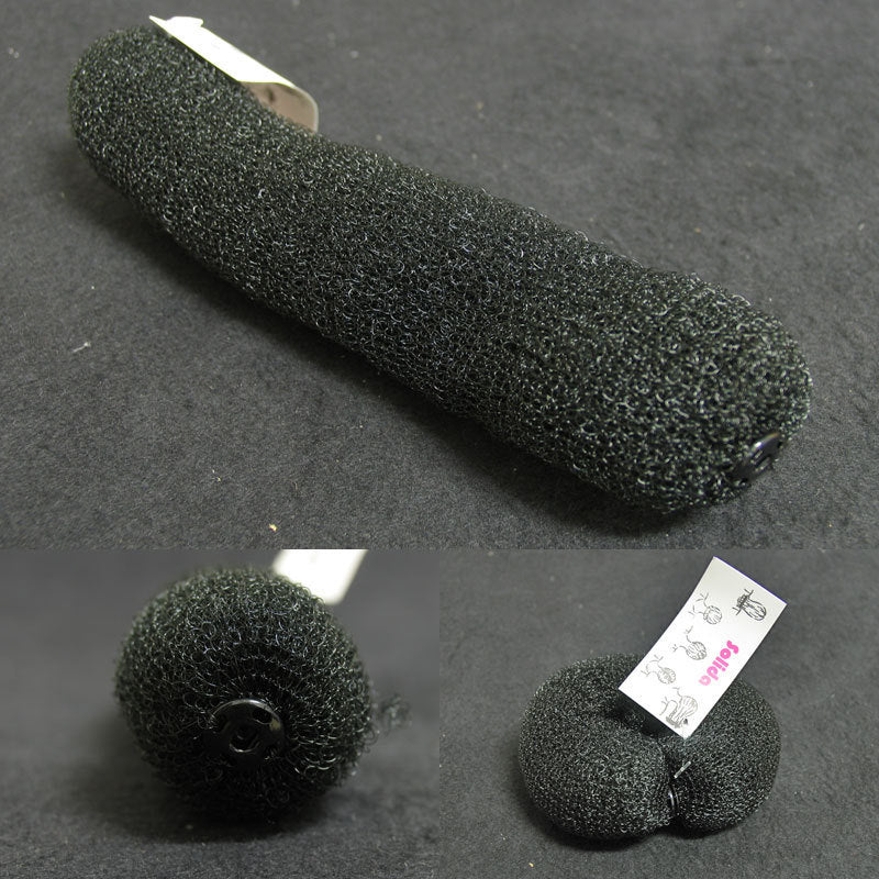 Ripieno per realizzare acconciature. Dotato di un bottone automatico può essere utilizzato sia nella forma distesa che ad anello. Colore nero. Lunghezza 18 cm circa.