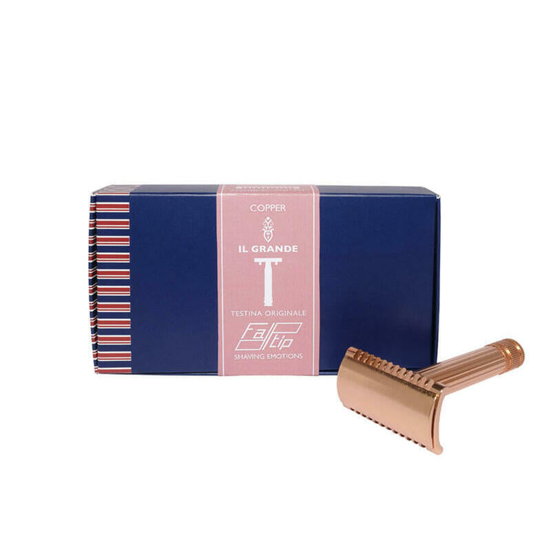 Il Copper Classic Orginale è un rasoio di sicurezza in 3 pezzi contraddistinto dal classico disegno del manico a colonna ionica che si interrompe con l’elegante base zigrinata che facilita l’apertura a vite della testina. E’ realizzato totalmente in ottone e poi sottoposto al processo di finitura metallica. Il rasoio è perfettamente bilanciato e facile da utilizzare.