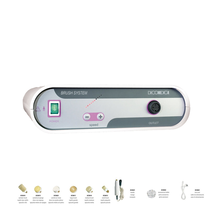 BRUSH SYSTEM è un apparecchio studiato per la pulizia in profondità dell’epidermide, mediante la spazzolatura meccanica.