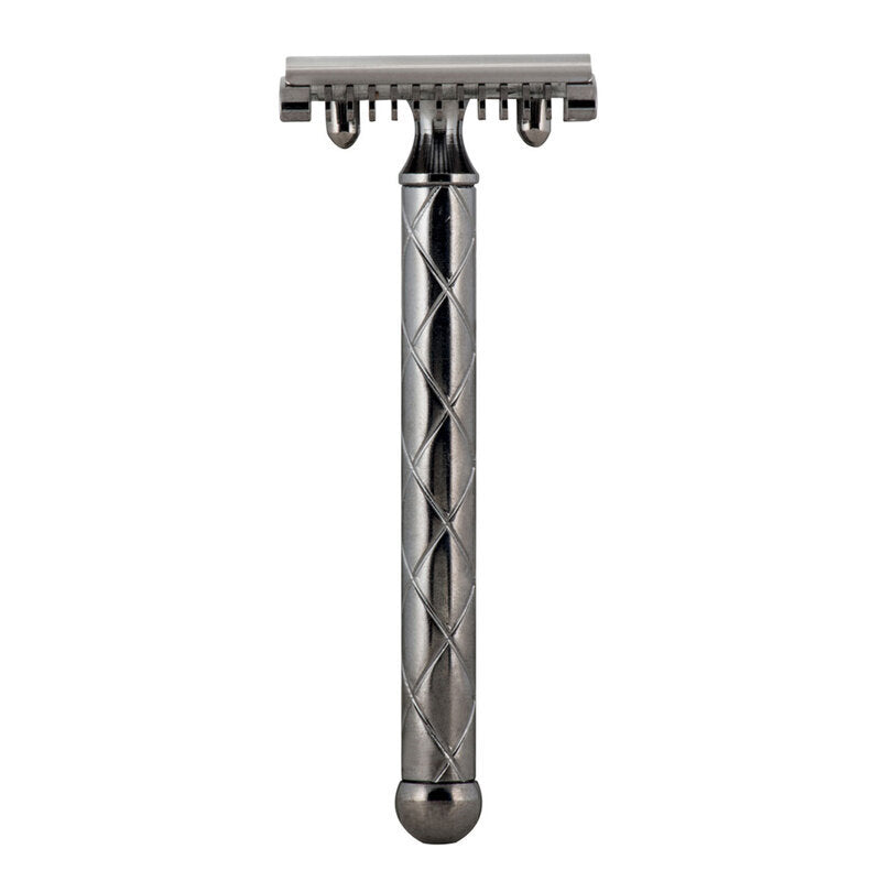 Rasoio Fatip in metallo nichelato nero svitabile per lame Double Edge con manico lungo stile Retrò.