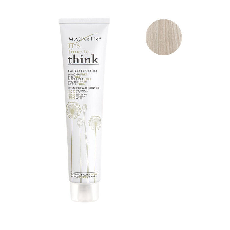 Think è la colorazione di nuova generazione di Maxxelle in grado di coprire il 100% del 100% dei capelli bianchi rendendo il trattamento il più naturale possibile perché privo di ammoniaca, PPD (Para-fenilendiamina), resorcina, e parabeni.