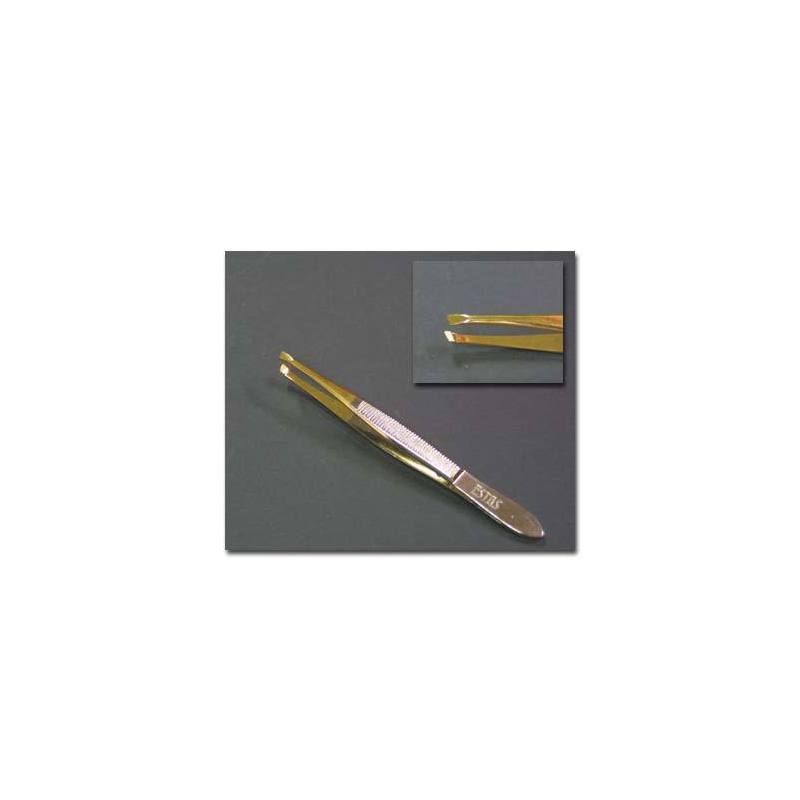 Pinzetta Solingen pari con punte dorate e taglio stretto obliquo.
