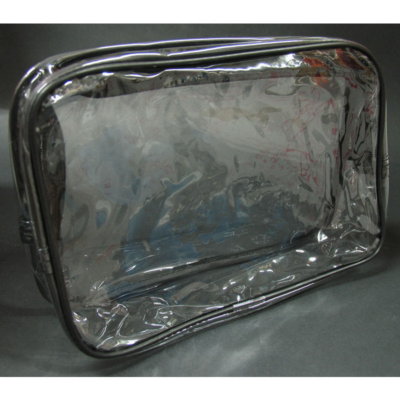 Astuccio porta attrezzi trasparente rifinito con un elegante bordo nero. Chiusura zip.