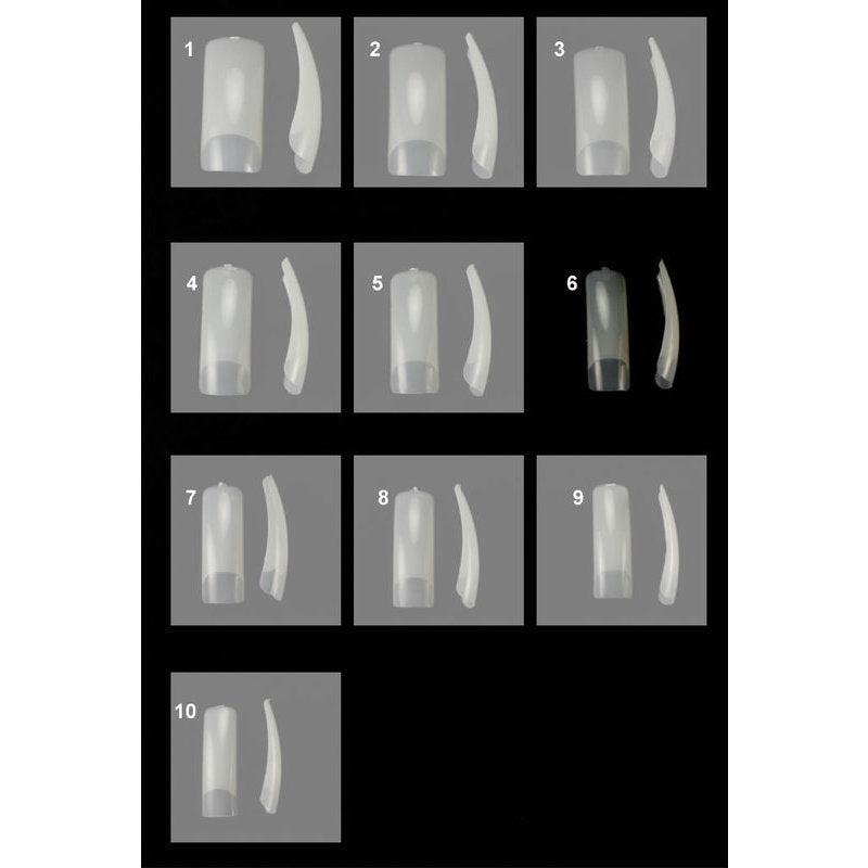 Estensione in ABS per l'allungamento dell'unghia naturale di colore naturale. L'ampia base di appoggio, la massima flessibilità e gli angoli arrotondanti della tip assicurano una rapida applicazione durante le fasi della ricostruzione.