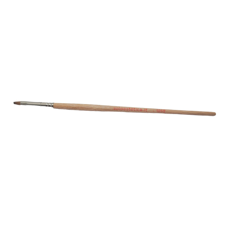 Pennello di manifattura artigianale italiana in puro Kolinsky per l'applicazione del gel o delle polveri acriliche. Manico in legno. Lunghezza pennello: 18,0 cm. Lunghezza punta: 0,6 cm.