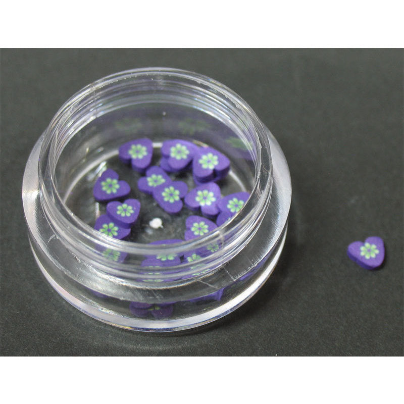 Prezzo unitario / perNuovissimo decoro per unghie in plastica a forma di cuore con fiore centrale. Colore viola.