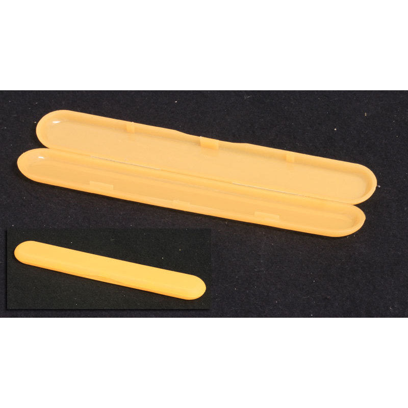 Astuccio portalima di colore arancione in plastica semi-trasparente. All'interno può contenere una lima lunga 17,8 cm, larga 2 cm e spessa 4 mm. Lunghezza esterna: 18,8 cm.