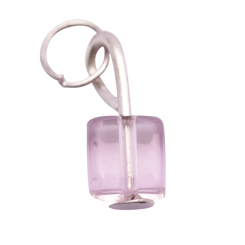Piercing per unghie a forma di cubo con pietra trasparente rosa. Dotato di due anellini.