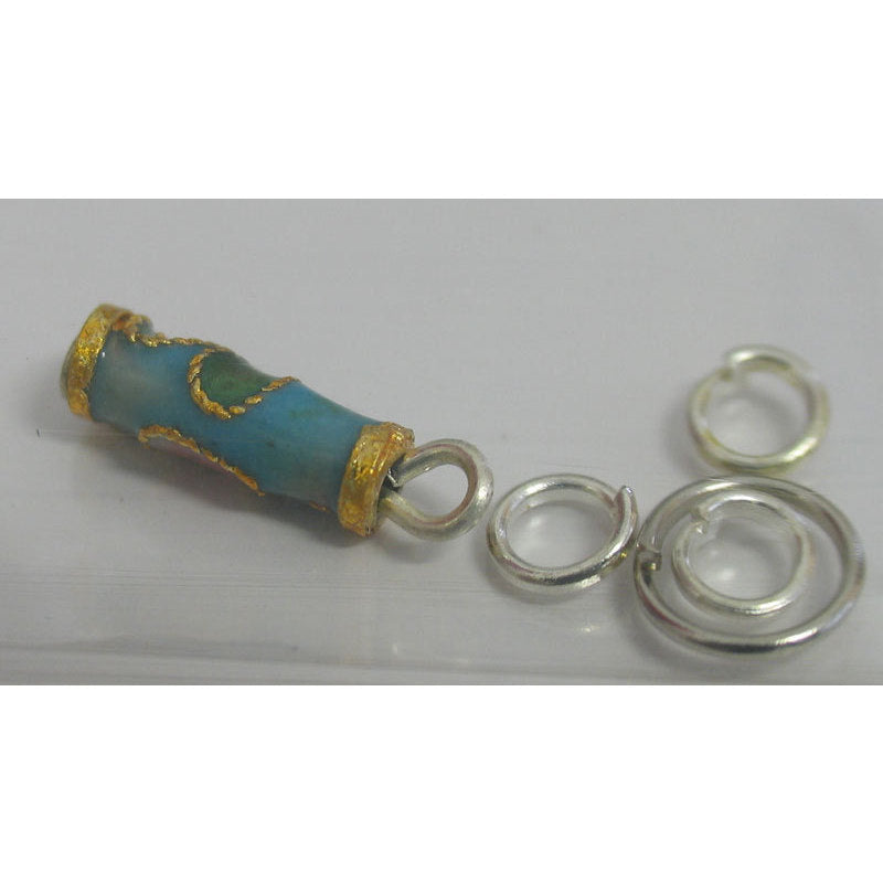 Piercing per unghie a forma di cilindro azzurro con inserti dorati. Dotato di due anellini.