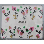 Disegni adesivi 2D per decoro unghie con scritte rock star. Si applicano sull'unghia e si ricoprono con uno strato di Top Coat o sigillante per nail art.
