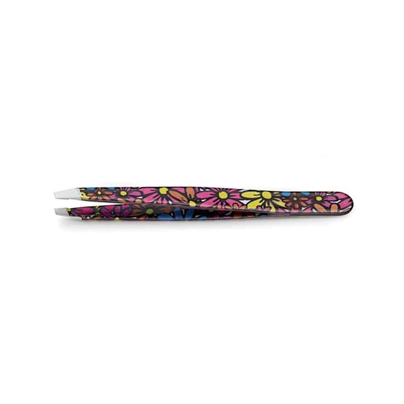 Pinzetta per ciglia in acciaio inox con la parte dell'impugnatura laccata con motivo Flowers. Taglio obliquo.