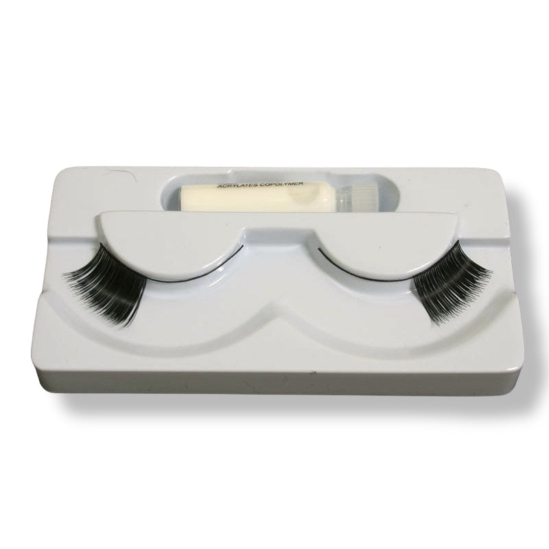 Mezza ciglia vera frangia di colore nero naturale. La confezione contiene anche 1 tubetto di colla per applicare le ciglia.