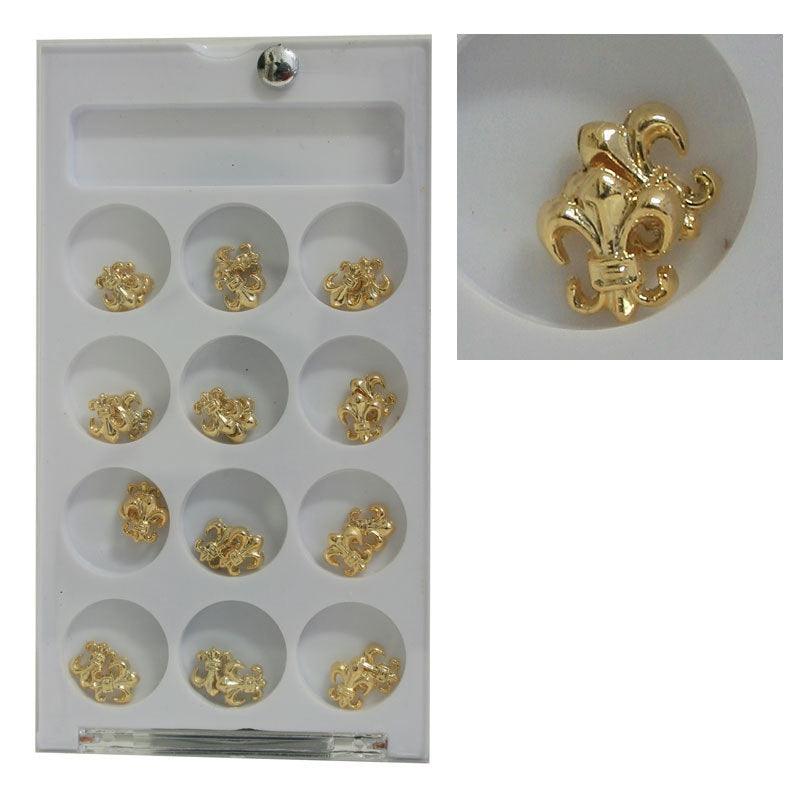 Decoro per unghie in metallo a forma di giglio colore oro lucido.