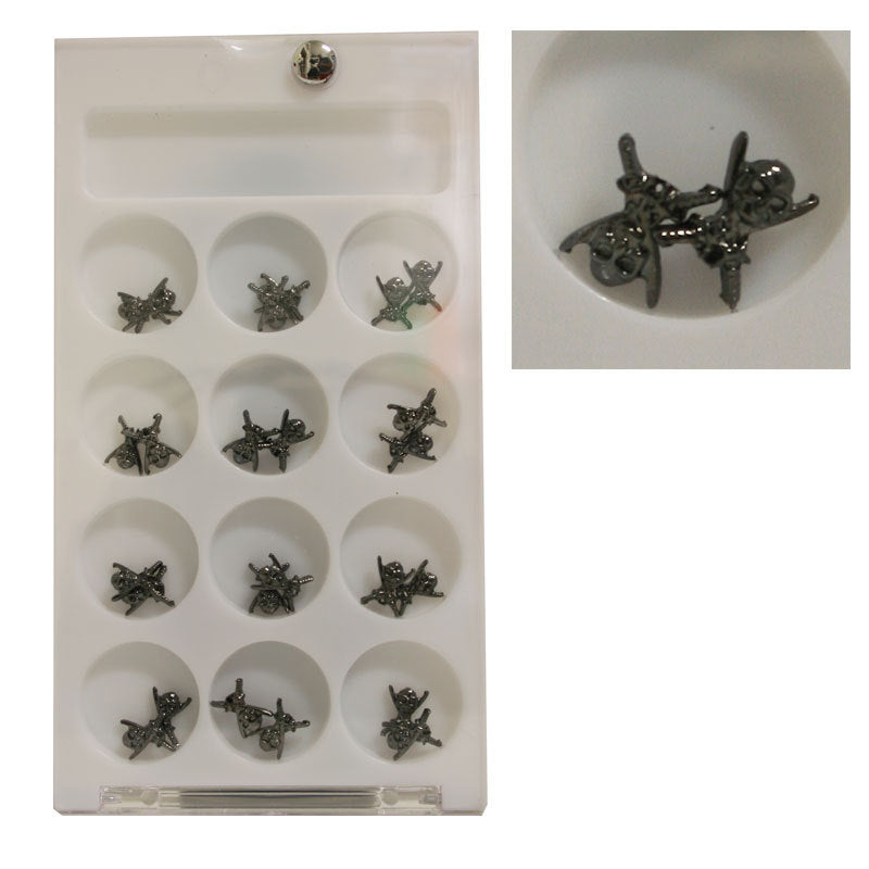 Decoro per unghie in metallo a forma di teschio colore nero satinato.