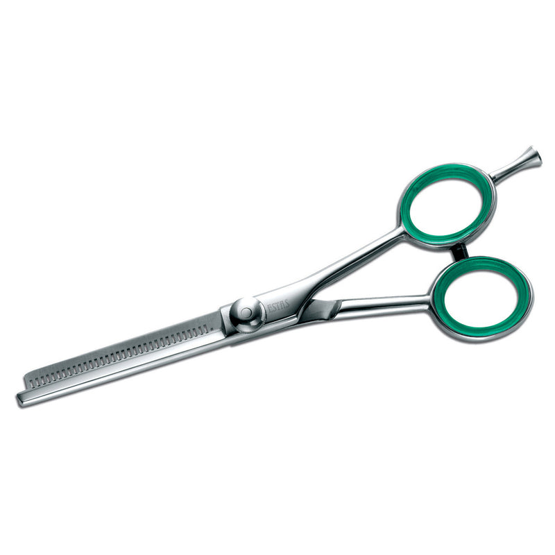 Forbice Sfoltire Extas ha 34 denti, lame convesse, filo a rasoio. La vite serve per la regolazione della tensione per avere un taglio sempre perfetto.