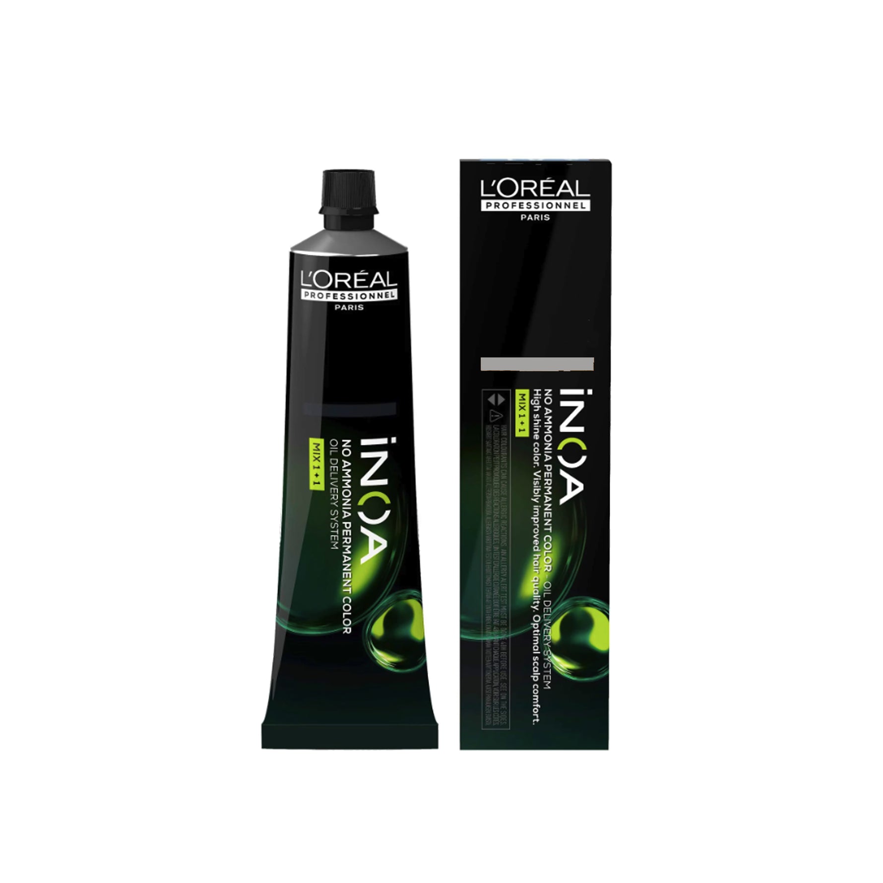 Inoa, colorazione ad ossidazione senza ammoniaca, senza odore. Tecnologia ODS2 (oil delivery system - Sistema di diffusione ad olio). Miscela facile ed utilizzo inedito. Schiarisce fino a 3 toni in 35 minuti. Copertura fino al 100% di capelli bianchi. Colore perfettamente armonioso dalle radici alle punte, tenuta e perfetta fedeltà del colore applicazione dopo applicazione. Comfort ottimale del cuoio capelluto. Intenso nutrimento e idratazione fino alla colorazione successiva. I capelli sono più morbidi rispetto a prima della colorazione. Brillantezza sublime.