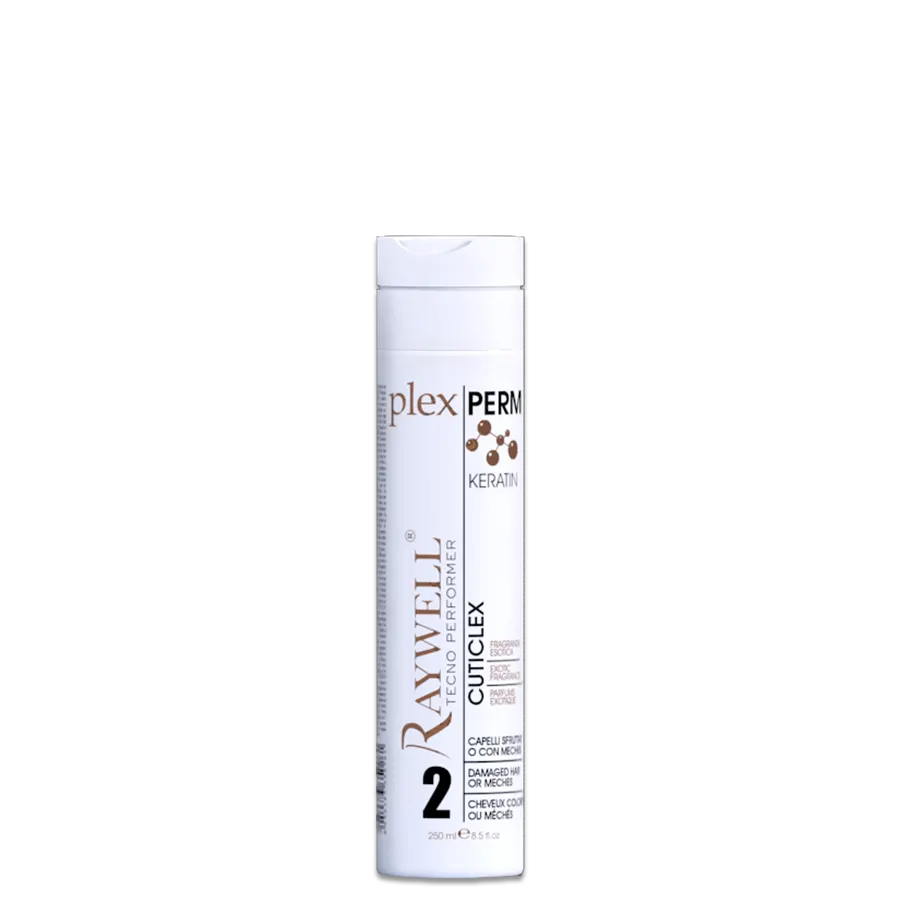 RAYWELL PLEX PERM è il liquido arricciante di nuova generazione, studiato per offrire performance professionali su ogni tipo di capello. La sua formula innovativa è arricchita con Cheratina Vegetale e Cuticlex, un complesso attivo che protegge e rinforza la struttura del capello durante il trattamento.