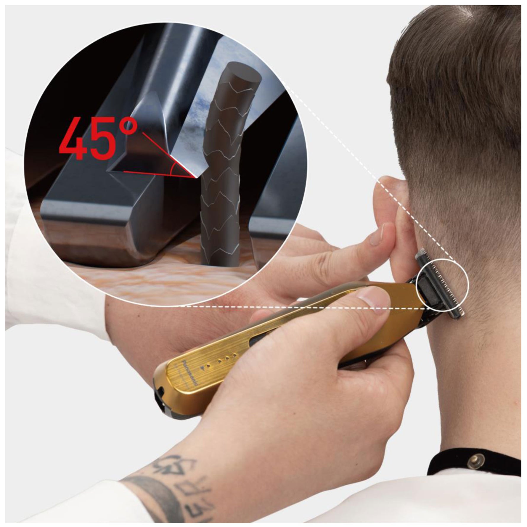 • Taglio netto e potente: lame giapponesi in acciaio inox affilate a 45°, abbinate a un motore a doppia velocità per prestazioni costanti anche sui capelli più folti.