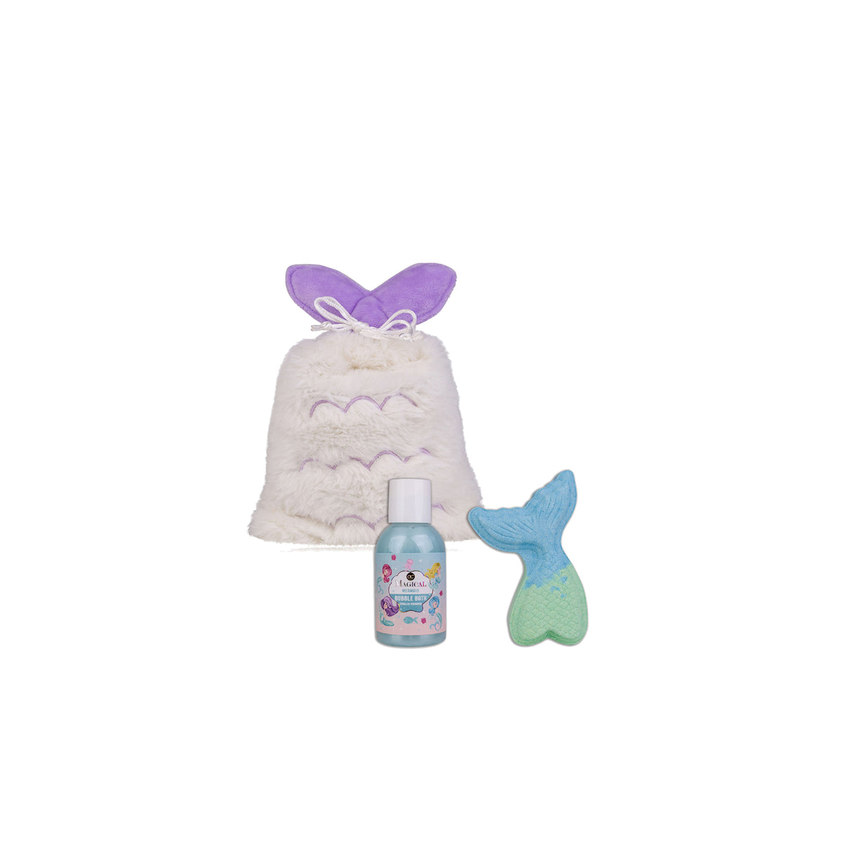 Immergiti nella magia del mare con questo adorabile set bagno a tema sirenetta! La pochette in morbido peluche bianco custodisce tutto il necessario per un’esperienza di relax e divertimento: un bagnoschiuma da 100 ml e una bomba da bagno effervescente da 110 g/90 g, entrambi profumati alla dolce fragranza Vanilla Rainbow.